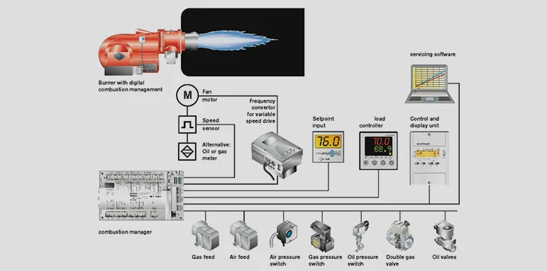 High efficiency oil / gas firing burner systems with intelligent burner management system